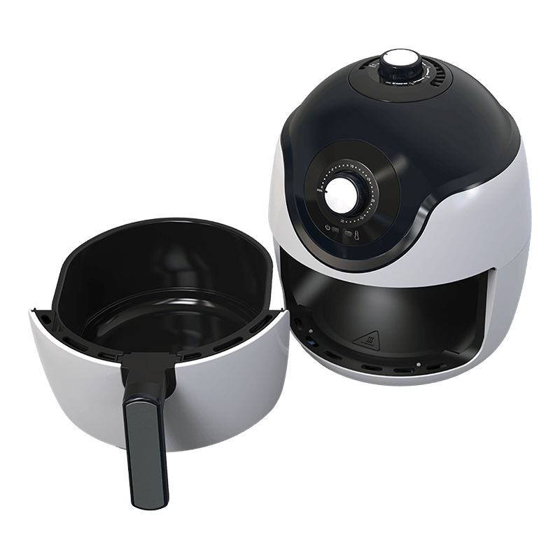 Ez a levegő sütő kompakt kialakítással büszkélkedhet, hosszú távú PP (polipropilén) szövetből készül.  A három.5l-es sütőtartály, amely egy teflon nem tapadási bevonatot javasol, lehetővé teszi a bűntudat nélküli sütést, még akkor is, ha a 304 rozsdamentes acél fűtési elem egyenletes és gyors főzést biztosít. Az időzítővel felszerelve, amely akár 30 percet, a fűtési mutatót és a hőmérséklet kezelését lehetővé teszi, nyolcvan és 200 szintű Celsius-tól kezdve, ez a fő sütő speciális manipulációt kínál a főzésen.