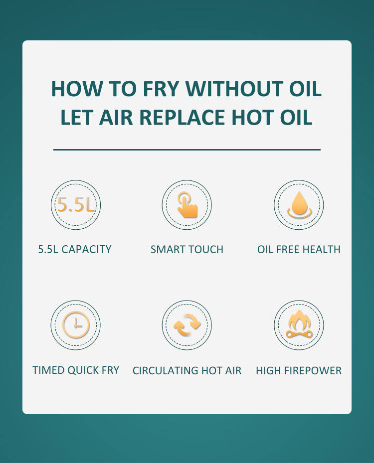 5,5L Knob vezérlési hőmérséklet-időzítő vezérlés Air Fryer YYZG-550S